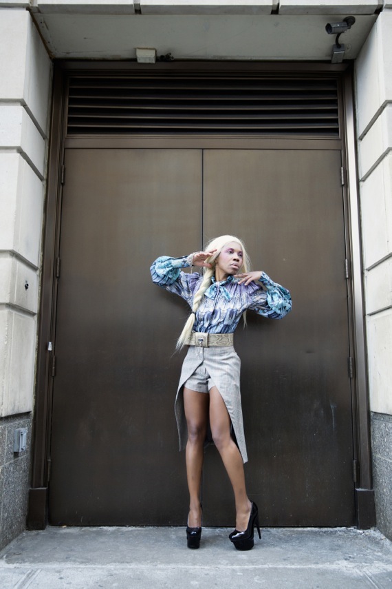 The common ground between art and fashion is transformative one with the other. The colors in this Alexander McQueen blouse transforms the men's inspired material in the break away skirt and shorts into a work of art. The look is pulled together by the balance of the different patterns manipulating masculine and feminine details to achieve this fie... read MORE