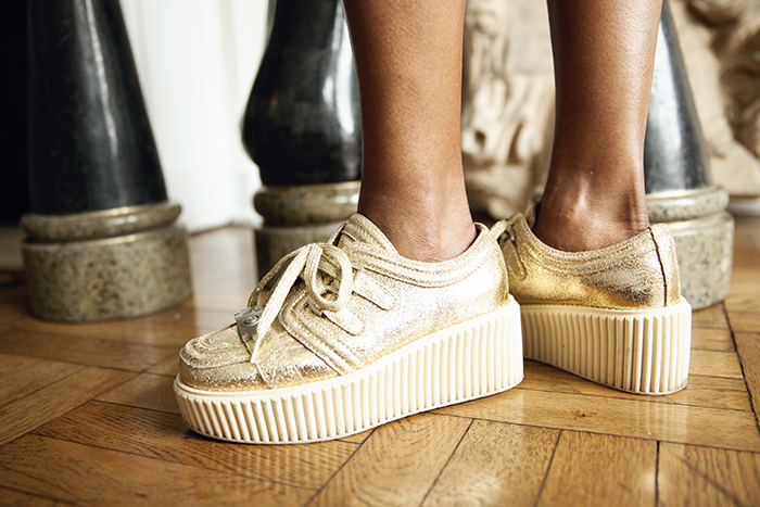 Chanel gold platform shoes